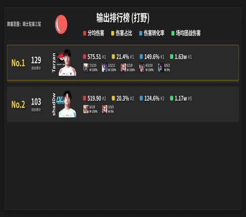 S15前三輪打野榜:輸出AL打野Tarzan綜合第一BLG.shad0w排名第二