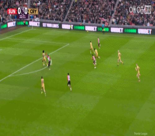 第30分鐘,先拔頭籌,耶雷米-皮諾搶射死角破門,水晶宮1-0