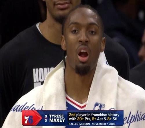 據(jù)統(tǒng)計,馬克西是76人隊史上第二位單場至少砍下29分8助攻8搶斷的球員,此前只有艾弗森在2003年11月7日做到過。此外,單場8搶斷也是馬克西職業(yè)生涯的搶斷數(shù)新高。