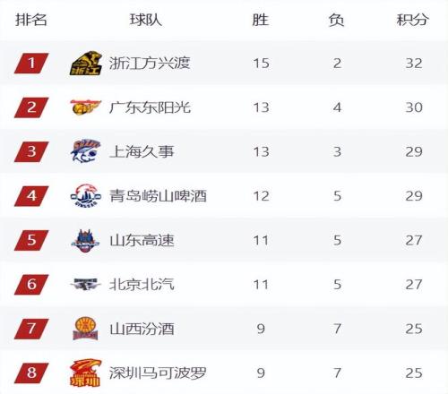 廣廈豪取6連勝繼續(xù)高居榜首,廣東暫時(shí)來(lái)到第二,廣廈和身后的廣東已經(jīng)完全拉開(kāi)了差距,目前廣廈陣容齊整,不出意外的話(huà),他們會(huì)是第一階段的榜首球隊(duì)。山東擊敗吉林后,暫時(shí)來(lái)到第5,青島戰(zhàn)略性放棄比賽,讓廣東隊(duì)重新坐穩(wěn)了前三位置,青島目前還是第4,看情況,青島是將目標(biāo)留在了未來(lái)和寧波廣州的兩場(chǎng)比賽,上海本輪將迎戰(zhàn)北京,這將是一場(chǎng)重頭戲,但相比之下,北京這次輸球的可能性很大,畢竟球隊(duì)現(xiàn)在也是傷兵滿(mǎn)營(yíng),真不好打。