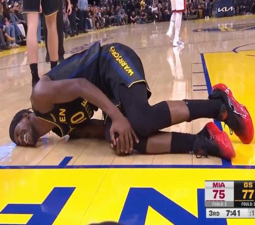 在今日勇士主場(chǎng)迎戰(zhàn)熱火的常規(guī)賽比賽進(jìn)行到第三節(jié)時(shí),巴特勒在跳起接球后痛苦倒地,隨后一直捂著自己的右膝痛苦大喊。