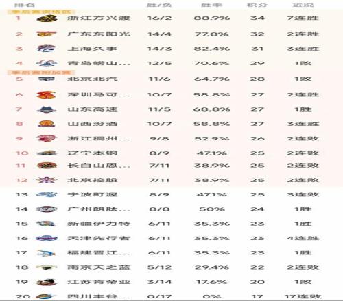 CBA最新積分榜